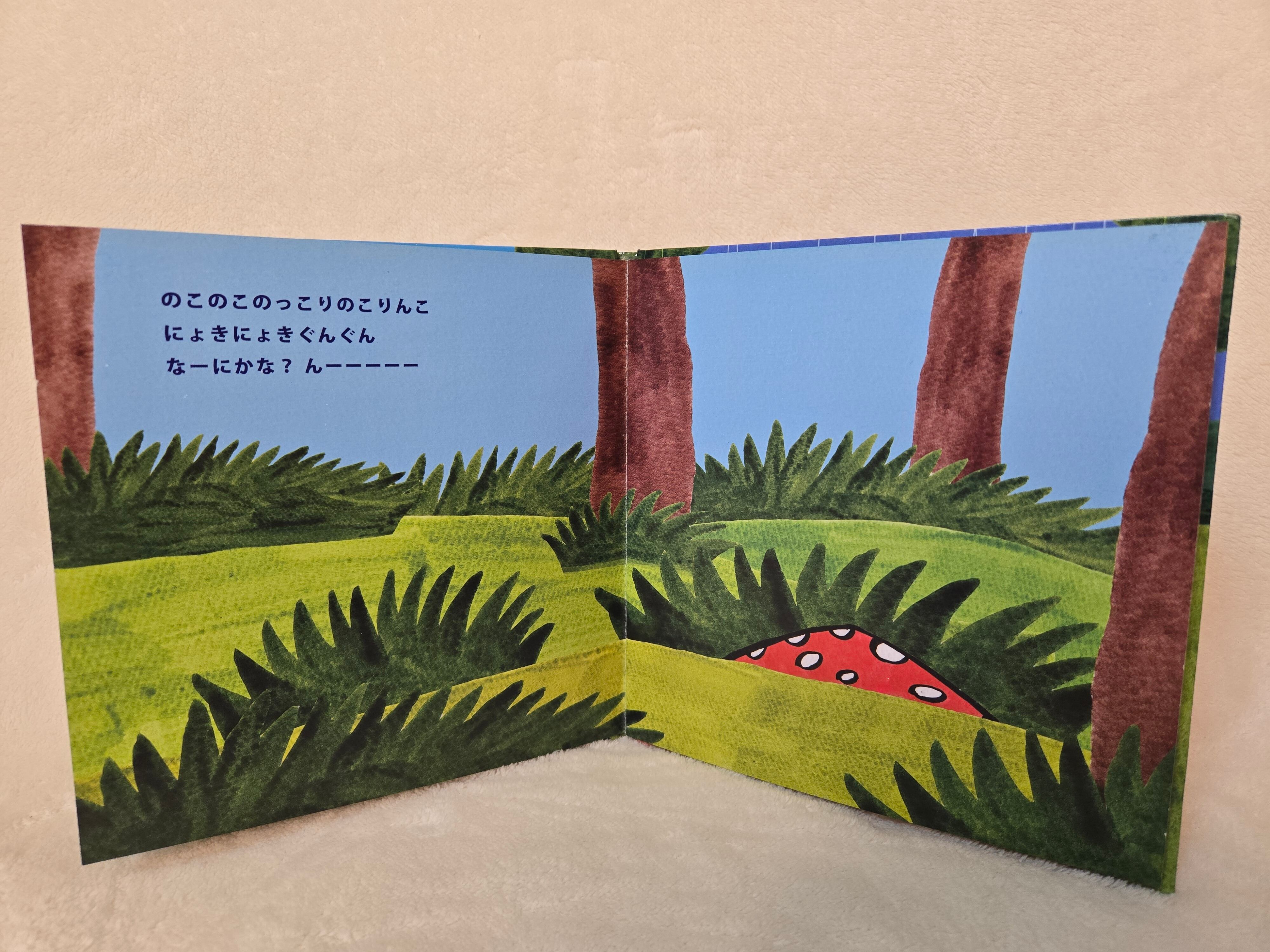 リズムを意識した『のこのこのっこり』と言うフレーズや、キノコたちが出てくるときの「ぴちゃん」といった様々な擬音に表情豊かなキノコ達。